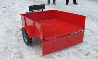 Тележки к мотоблокам предназначены для транспортировки различных грузов при выполнении работ на приусадебных участках, садах и в огородах индивидуального пользования. Тележку к мотоблокам можно использовать для перевозки различных сыпучих, длинномерных, штучных грузов. Разгрузку с тележки можно осуществлять способом опрокидывания кузова в сторону заднего борта. Размер кузова 1500х1200мм. Колеса 4х8.
